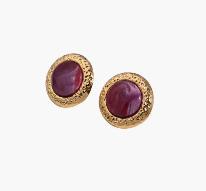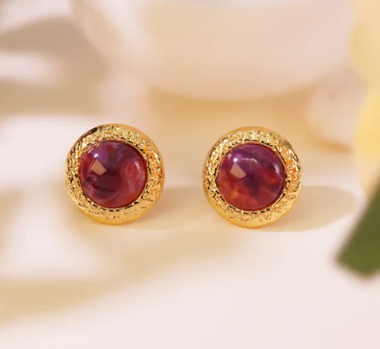Σκουλαρίκια σχεδιασμένα για να ξεχωρίζουν, με έντονη μωβ πέτρα που τραβά το βλέμμα. Ιδανική επιλογή για δυναμικές εμφανίσεις και statement στυλ.